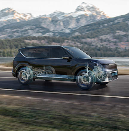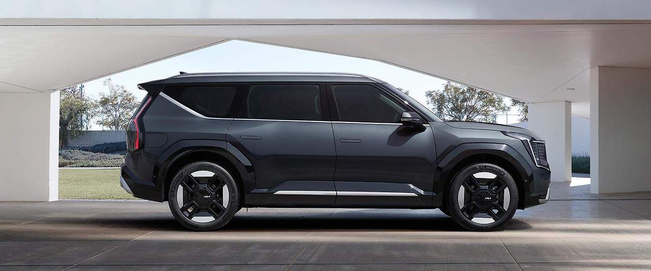기아 EV9은 19인치부터 21인치까지 다양한 휠 옵션을 제공하며, 고성능 타이어로 뛰어난 접지력과 주행 안정성을 보장합니다. GT 라인을 선택하면 경량 알로이 휠과 퍼포먼스 타이어가 추가되어 다이내믹한 주행 성능을 경험할 수 있습니다.