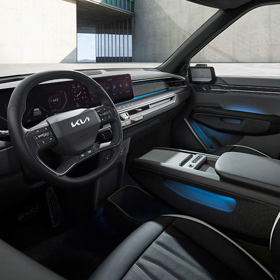 최신 안전 기술을 대거 적용하여 최고 수준의 안전성을 자랑하는 기아 EV9은 전방 충돌 경고, 차선 이탈 경고 및 보조 시스템, 어댑티브 LED 헤드램프 등 다양한 안전 사양을 기본으로 탑재하고 있습니다. 자동 주차 보조 시스템과 360도 서라운드 뷰 카메라는 운전의 편리함을 더해줍니다.