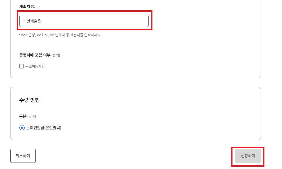 | 발급신청자 | 본인 또는 대리인이 신청 가능 | 전자민원창구를 통한 발급 신청은 본인만 가능 |