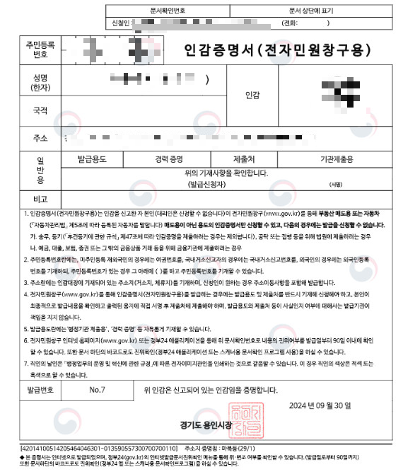 또한, 이번 시범 운영 기간 동안 전자민원창구를 통한 인감증명서 발급은 무료로 제공됩니다. 본격적인 온라인 발급 서비스는 시스템 안정화를 거친 후 2024년 11월 1일부터 정식으로 시작될 예정입니다.