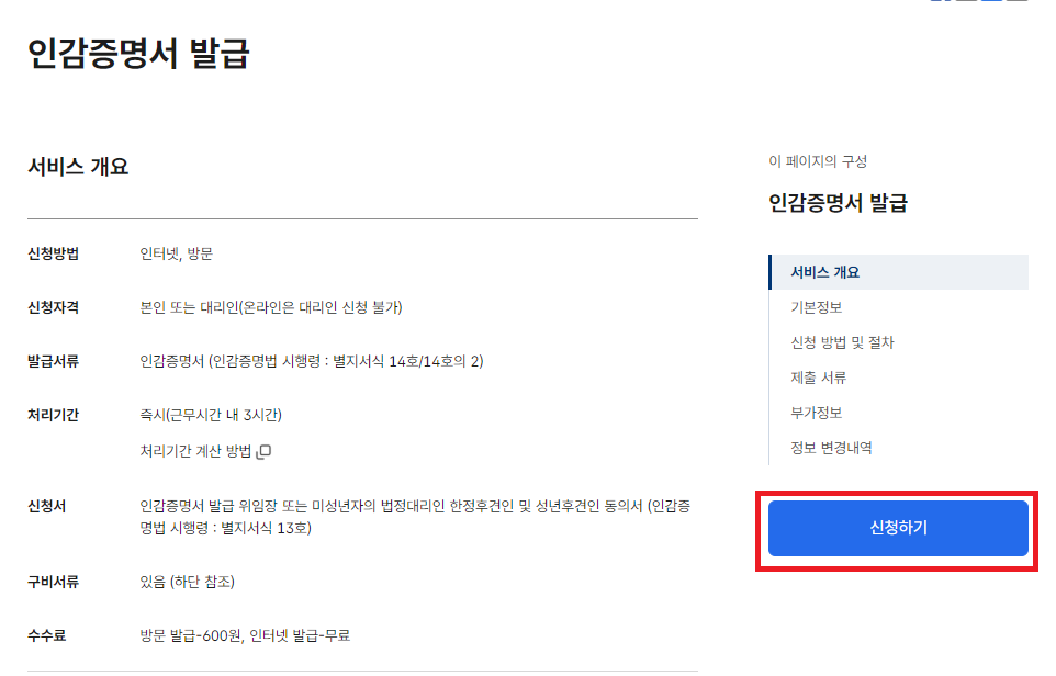 | 수수료 | 1통당 600원 | 전자민원창구(정부24)에서 발급시 무료 |