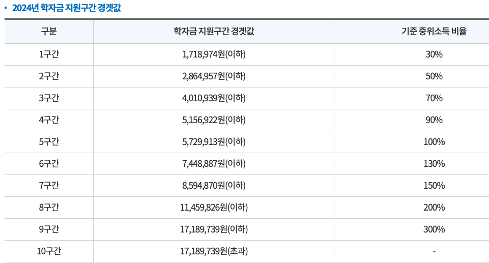 학자금 지원구간 같은 경우는 아래와 같습니다.